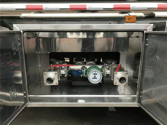 18立方東風(fēng)鋁合金運(yùn)油車罐體上配置二個(gè)歐標(biāo)罐口,罐體還可以分倉,配海底閥等連接配件。