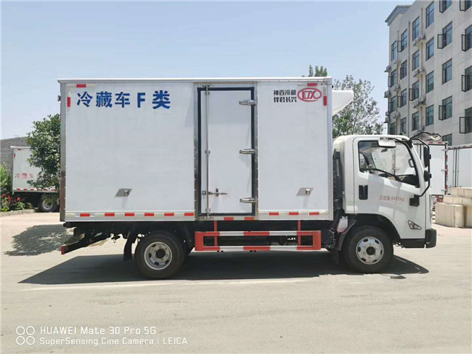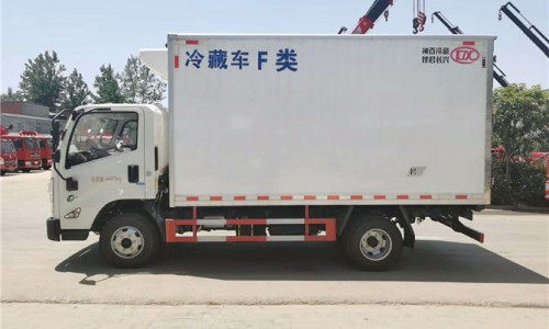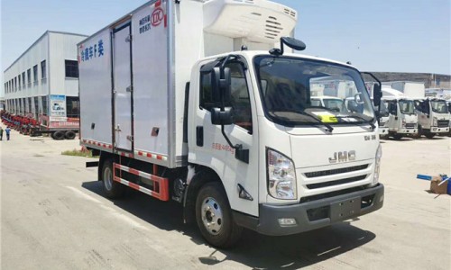 江鈴凱運冷藏車,整車尺寸:5995×2300×3200,廂體尺寸:4050×2100×2050,搭載五十鈴130馬力發(fā)動機,5檔變速箱,原廠空調(diào),助力,ABS,油剎,軸距3360,7.00R16LT 8PR輪胎,廂體采用內(nèi)外玻璃鋼、中間8CM 厚聚氨酯保溫板、底板為防滑花紋鋁板,不銹鋼門鎖件,-15度制冷機組,其余標配。