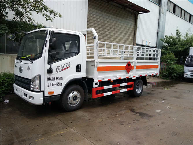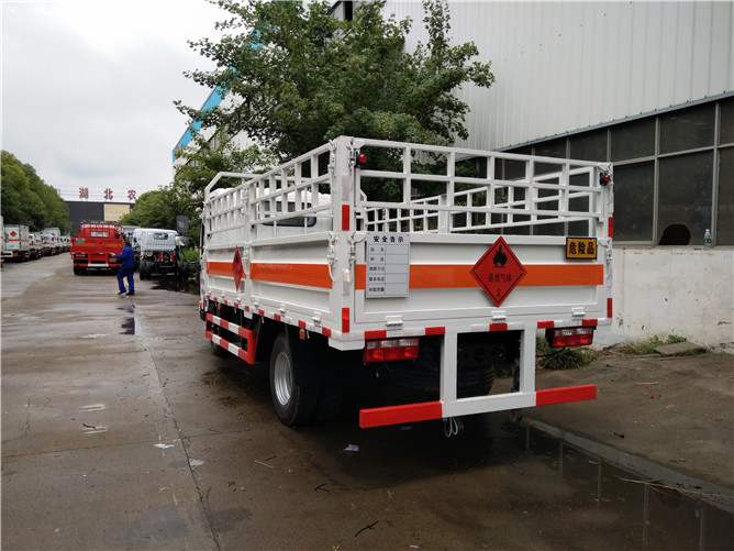 解放氣瓶運輸車搭載濰柴110馬力發(fā)動機,帶電動門窗,助力,空調(diào),防爆胎,剎車片報警器,安全帶語音提醒。專業(yè)運輸2類危險品物品。