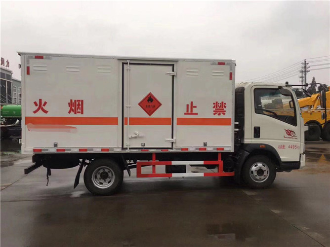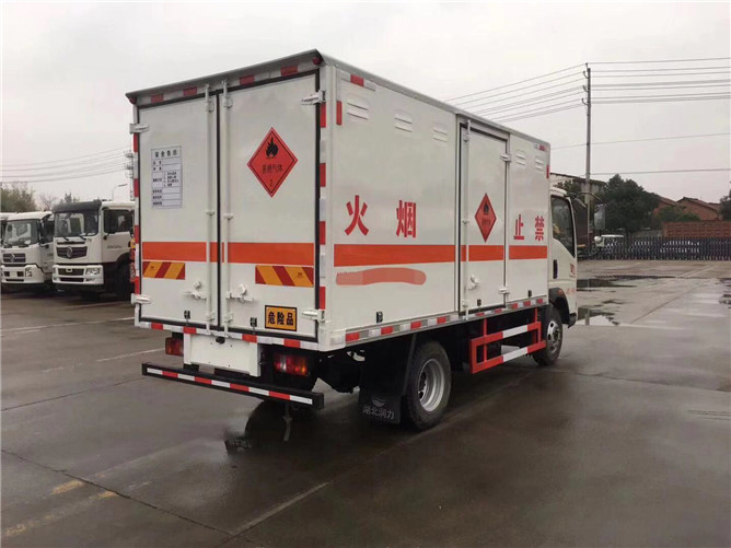 氣瓶運輸車主要用于運輸具有獨立容器(瓶)包裝的易燃氣體(罐(瓶)裝壓縮氫、液化石油氣),類項號為2.1和非易燃無毒氣體(罐(瓶)裝二氧化碳、氧氣、氮氣、氬氣),類項號為2.2。廂體外部按國家標準配置設(shè)警示標志,廂體兩側(cè)安裝可燃氣體標志,帶“燃”字樣,駕駛室頂部安裝危險三角牌,車身側(cè)門及后部粘貼橙色反光標識和菱形標識。