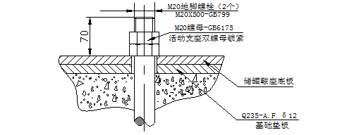 為了保證儲罐軸向的自由伸縮,活動式支座安裝螺母為雙螺母鎖定,下部螺母擰緊后倒退一圈,再擰緊上部螺母,使鞍座在基礎平面上可以滑動。螺栓安裝時應注意鞍座長圓孔左右間隙不得少于10mm,固定式鞍座應用螺母直接擰緊,鞍座上接地線應良好接地。