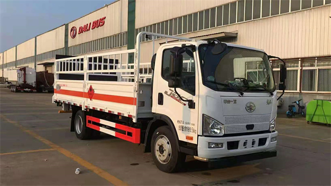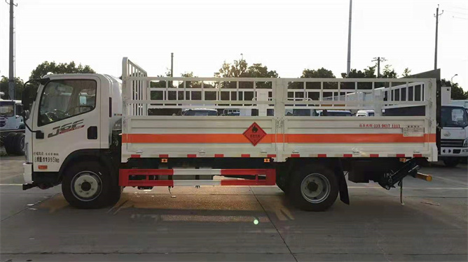 該車為倉欄式氣瓶運(yùn)輸車,多用于鋼瓶高度較高的如氧氣瓶等,一些運(yùn)輸液化石油氣鋼瓶的物流公司則多傾向于選擇廂式運(yùn)輸車。