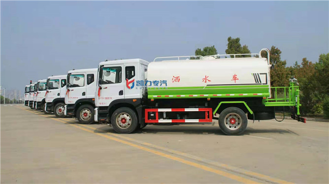 據(jù)悉,此批灑水車搭載玉柴200馬力發(fā)動(dòng)機(jī),軸距為3950毫米,配置8檔變速箱,天億牌60/90水泵,帶萬(wàn)向前沖、后灑、帶平臺(tái)、大口徑球閥、高位花灑、S型高炮。