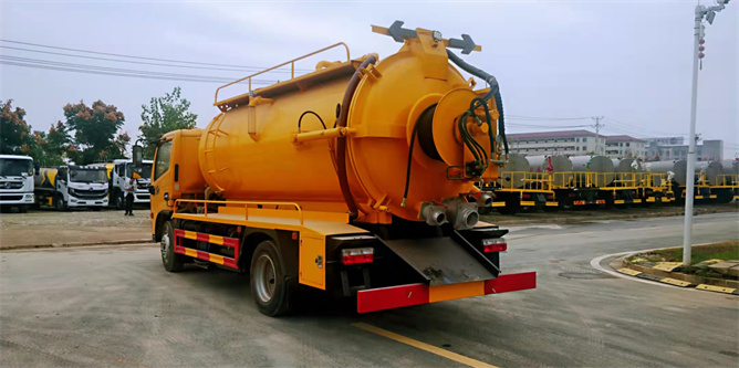 此款車采用東風多利卡底盤制作,軸距為3800mm,搭載玉柴165馬力發(fā)動機,輪胎為245真空胎,罐體由清水箱和污水箱兩部分組成,前者容積為2.2立方,后者為5.5立方,配置通潔牌215流量高壓泵,SK-12水循環(huán)泵,100米19號高壓管,10個高壓沖頭,其余標配。