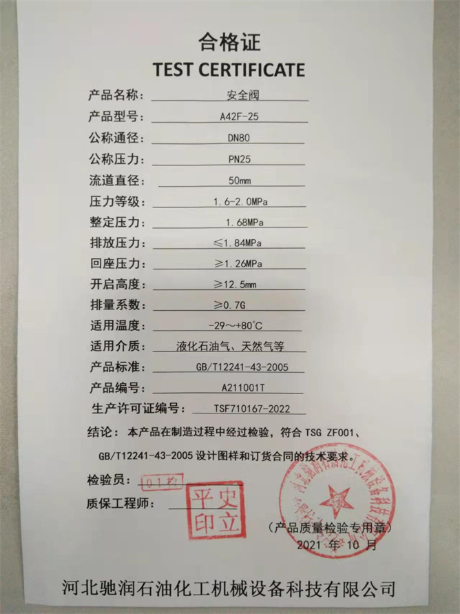 由上圖可以看出,安全閥合格證上對(duì)適用溫度和適用介質(zhì)均有明確規(guī)定,因此用戶在液化氣安全閥時(shí)應(yīng)注意關(guān)鍵參數(shù)是否正確,以免錯(cuò)買導(dǎo)致無(wú)法使用。