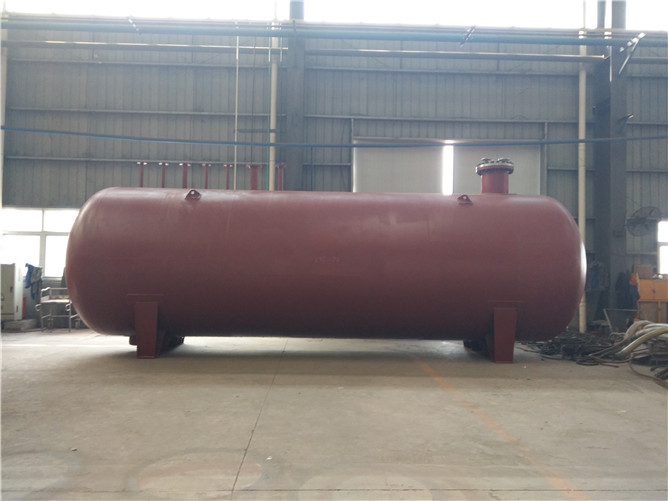 45立方液化氣地埋罐采用Q345R材質(zhì)制作,通常設(shè)計成直徑2700毫米,筒體厚度14毫米,封頭厚度16毫米,設(shè)有2個DN450的人孔,1個DN150液位計管口,罐體總質(zhì)量為10440kg,可裝載17995kg液化石油氣。