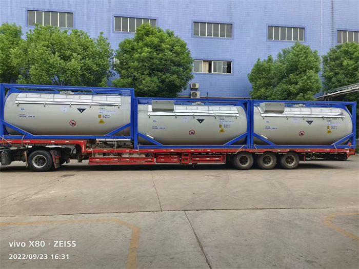 9月23日,我公司壓力容器分廠生產(chǎn)的6臺(tái)20英尺二氧化硫罐式集裝箱應(yīng)客戶要求準(zhǔn)時(shí)裝車發(fā)貨。