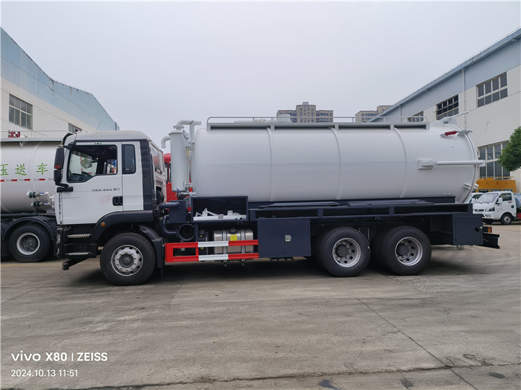 清洗吸污車兼?zhèn)淝逑春臀蹆纱蠊δ?,在很多地方如機場、加油站,高速服務站、建筑工地等地方應用廣泛,今天為大家?guī)б豢钊莘e較大的車型——重汽豪沃350馬力22立方清洗吸污車,詳細配置介紹如下: