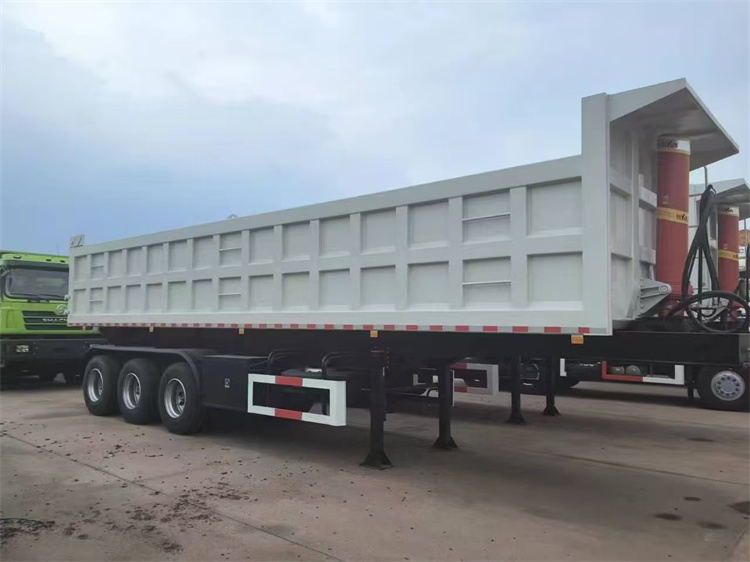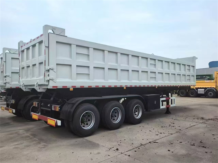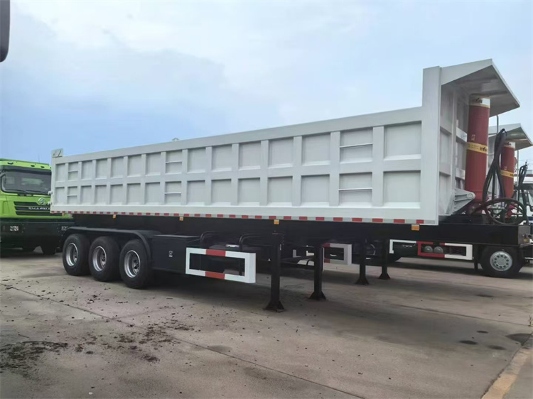 自卸式三軸半掛車裝載能力強,裝卸方便,因而在很多工程項目中備受青睞,今天兩臺可容納32立方的自卸半掛車完工,將發(fā)往非洲交付用戶,它采用前置液壓系統(tǒng),貨箱整體顏色為白色,鋼板材質(zhì)和車軸均為國內(nèi)一線品牌,詳細(xì)配置如下: