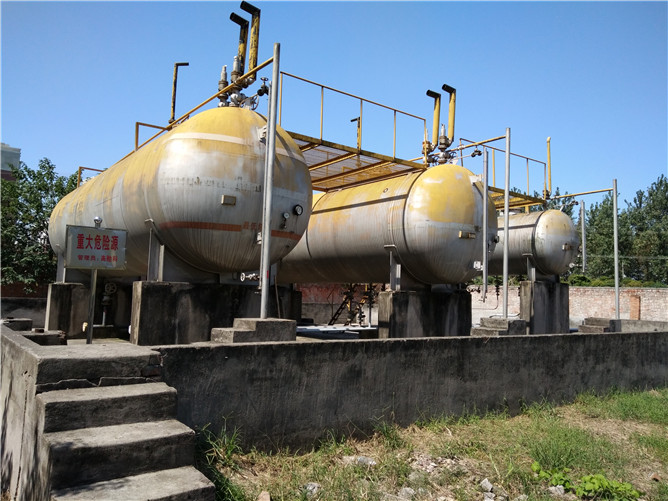 下圖為3個(gè)50立方液化氣儲(chǔ)罐建成的氣站: