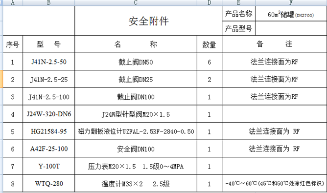 由清單可以看出,液氨儲罐安全附件跟罐體上的罐口是密切相關(guān)的,液相若改用DN80的,截止閥就會隨之改變,因此用戶朋友們在購買時(shí)一定要按照你的圖紙來,避免弄錯。