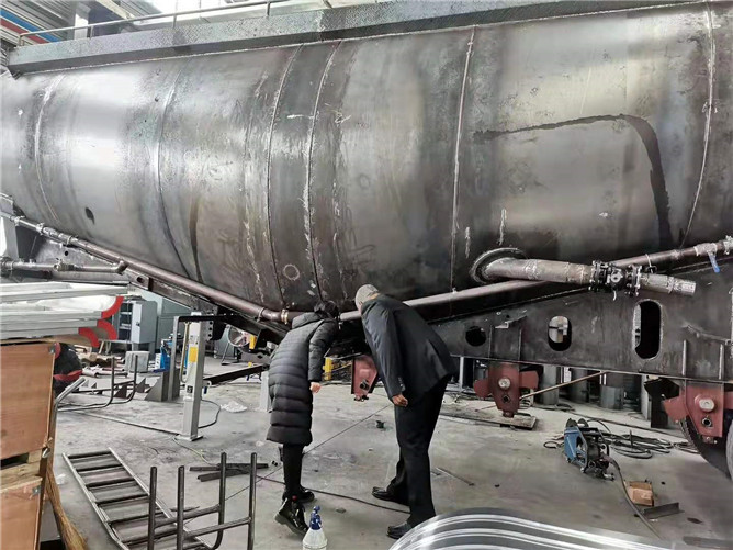 據(jù)悉,客戶用此車(chē)運(yùn)輸糧食等顆粒物,采用碳鋼材質(zhì)制作,設(shè)計(jì)壓力為0.3MPa,設(shè)計(jì)溫度為常溫,筒體厚度5mm,封頭厚度6mm,罐體分為四倉(cāng),工作原理采用重力氣卸式,配備空壓機(jī)、管線、閥門(mén)等設(shè)備,水壓和氣密均通過(guò)調(diào)試,回去之后直接可以使用。