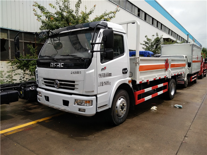 氣瓶運輸車廂體上按制造要求須張貼“易燃氣體”和黃色色帶,廂體尾部還須張貼危險品類別等信息,用戶在使用過程中應時刻注意這些標識是否有脫落,若有,及時補上。方便監(jiān)督人員檢查或提醒同行人員遠離危險品廂式車。