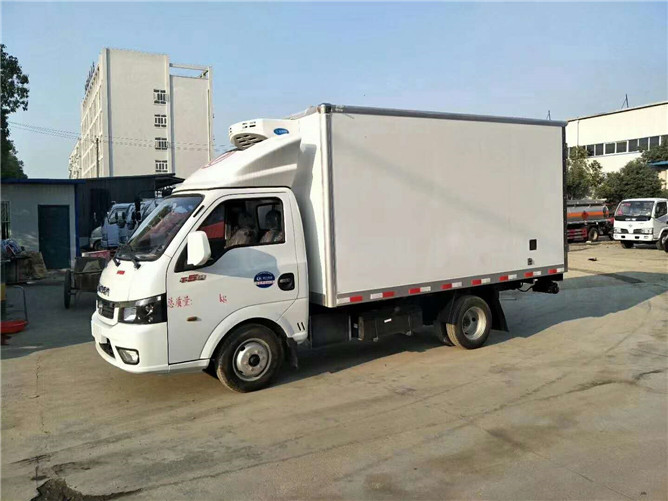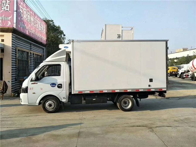 此款小型冷藏車額定質量為495kg,全柴95馬力的動力,實際可以裝載1噸左右貨物,適用于短途配送,方便快捷。