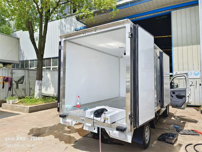 由于運(yùn)輸物質(zhì)主要為食品、蔬菜,應(yīng)用戶(hù)要求安裝零下5度華泰牌制冷機(jī)組,且該冷藏車(chē)開(kāi)設(shè)有側(cè)門(mén),且寬度特制為1000mm,方便實(shí)際裝卸作業(yè)。