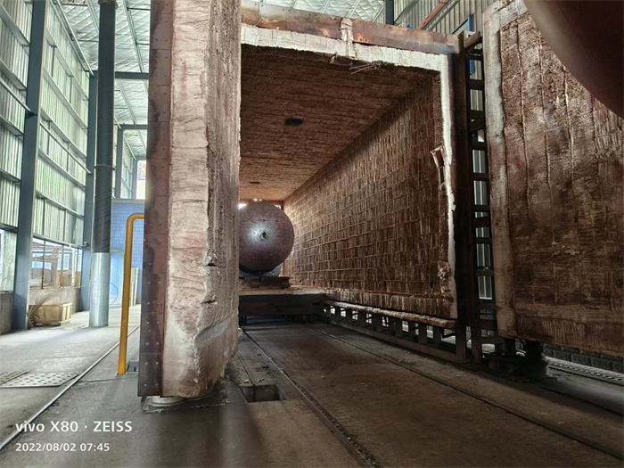 今天上午,一臺60立方液化氣儲罐在完成熱處理工藝后,即將出爐進行下一步的噴砂工作。