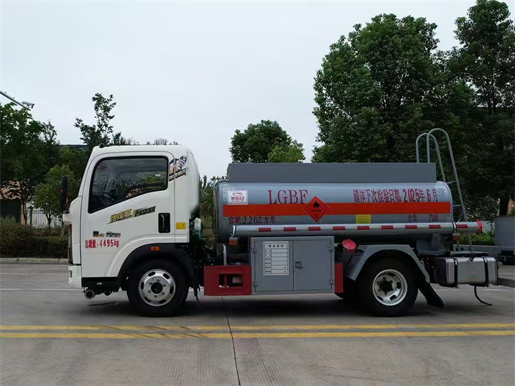 罐體配置:公告容積2.26立方,采用Q235優(yōu)質(zhì)碳鋼板材,標配大流量油泵(可泵進泵出),標配通倉帶歐標全套下裝油系統(tǒng)(含1個下裝卸油閥、1個油氣回收閥、1個油氣回收接口、1套氣動組合開關、1個防溢流探桿和1個插座),一只歐標罐蓋,一個海底閥,罐體頂部兩側帶折疊升降防護欄,標配顏色灰色,罐體兩側正中貼橙色反光帶,貼三個“易燃液體”標識,安全告示牌,合適位置安裝一只工具箱,其它均為廠家標配。