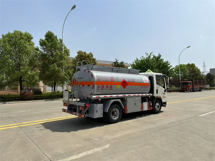 罐體配置:公告容積6.36立方,采用Q235優(yōu)質(zhì)碳鋼板材,標(biāo)配大流量油泵(可泵進(jìn)泵出),標(biāo)配通倉帶歐標(biāo)全套下裝油系統(tǒng)(含1個(gè)下裝卸油閥、1個(gè)油氣回收閥、1個(gè)油氣回收接口、1套氣動(dòng)組合開關(guān)、1個(gè)防溢流探桿和1個(gè)插座),一只歐標(biāo)罐蓋,一個(gè)海底閥,罐體頂部兩側(cè)帶折疊升降防護(hù)欄,標(biāo)配顏色灰色,罐體兩側(cè)正中貼3M-1級橙色反光帶,貼三個(gè)“易燃液體”標(biāo)識,安全告示牌,合適位置安裝一只工具箱,其它均為廠家標(biāo)配。