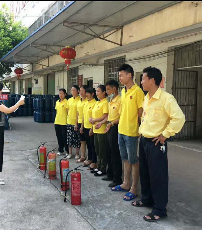 據悉,此液化氣站總容量為110立方,由兩個50立方液化氣儲罐和一個10立方殘液儲罐,地處贛州交通要道,平日日均售氣量較大,人員流動較多,氣站管理者十分重視日常灌氣、充裝、裝瓶等作業(yè)的安全。特別組織員工學習使用滅火器滅火作業(yè),王站長將一桶廢棄物引燃,工作人員一一按正確的方式打開滅火器進行滅火作業(yè)。